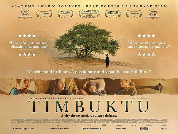 我其實非常喜歡【在地圖結束的地方】,喜愛程度甚至高於大量致敬費里尼的【絕美之城】,兩部電影都在坎城影展鎩羽而歸,卻都在歐洲各大電影獎項及奧斯卡獎有所斬獲,這部電影看似無常,故事沒有清晰主線,但明確的卻是在伊斯蘭國統治之下的庶民景況,賣魚的婦女、穿著長褲的阿伯以及不願將女兒出嫁的媽媽,全片一再進行宗教、人性及國族的辯論,早已迎接現代化生活的廷巴克圖,卻面對封閉的伊斯蘭國統治,他們該如何去面對這些無趣的生活。
