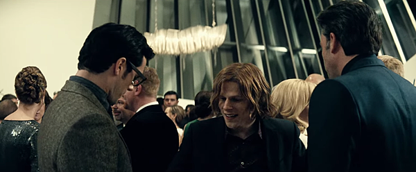 在【超人:鋼鐵英雄】曾讓雷克斯路瑟的公司標誌驚鴻一瞥,也或許是讓雷克斯初次見到超人的關鍵,聰明的他很有可能早就察覺超人、蝙蝠俠各自的真實身分,他也樂得讓兩大英雄對打,然後只需要他在最後出來收拾殘局就好,而他也透過這個宴會讓兩人認識。