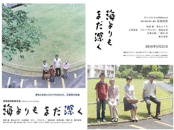 《比海還深》被譽為《橫山家之味》的姊妹作,同為是枝裕和執導,阿部寬與樹木希林主演,主角還都恰好名為良多,只是這次的良多相較於8年前,他更為落魄,賭博以及懶惰的惡習從未改過,最後他的日子也沒有改變。