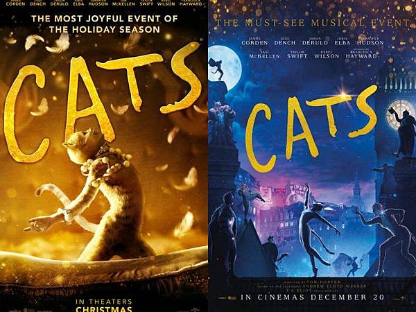 《貓》的音樂仍然很動人,如果閉上眼睛應該是蠻愉快的觀影享受,但只要一睜開眼睛,便能看到這些演員、歌手及舞者的臉被印在貓、蟑螂以及老鼠的身上跳舞,而做得最好的特效則在於他們活靈活現的貓尾巴,如此而已。