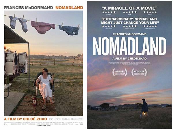 趙婷執導的《游牧人生》敘述的是芬恩(法蘭西絲麥朵曼 飾演)從有到無的浪跡旅程,中年婦女喪偶又失去工作, 突然一無所有,已經沒有了制式化的工作,該怎麼填補日子?原來人生是從放棄的那一刻,才真正開始的,芬恩原本以為循規蹈矩的生活,才開始要有了改變。