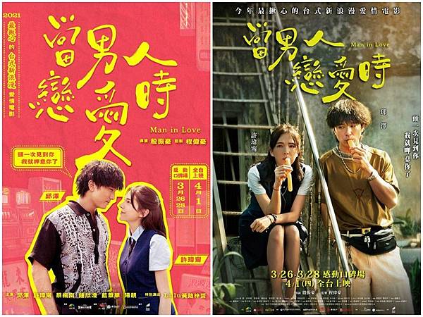 改編自韓版電影《不標準情人》,邱澤、許瑋甯主演的《當男人戀愛時》不僅在故事上增添許多台味,更填補更多細節,諸如我們明瞭阿成(邱澤 飾演)為何腦部嚴重受損(前段不斷特寫他常被打頭),阿成為何進入討債公司(幫生意失敗的哥哥躲避債務),還有浩婷(許瑋甯 飾演)的決絕與失望,讓《當男人戀愛時》的通俗簡單,縮化成一句苦澀的引號,讓我們願意藏身其中,看待這對戀人的起承轉合。
