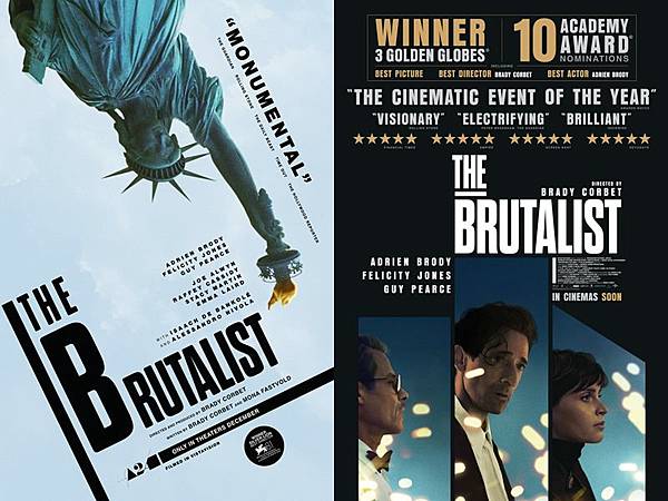 《粗獷派建築師》意指為「粗獷建築主義」,透過虛構的建築師拉斯洛(安德烈布洛迪 飾演)來到美國發展的一連串過程,從懷才不遇到流落民間,從受到賞識到希望破滅,拉斯洛作為移民視角完全重塑了「美國夢」的幻滅階段,找來23年前以《戰地琴人》拿下奧斯卡影帝的安德洛布洛迪主演,格外有意義,猶太人脫離納粹集中營的陰影,抵達美國之後卻仿造昔日待過的集中營製作巨大的粗獷、極簡主義建築物,渴望著自由,卻又自知永遠被這個世界封閉著。
