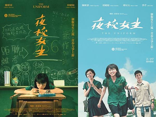 陳姸霏的外型仍很適合演高中女學生,從《無聲》、《孤味》開始已演了4年,《夜校女生》的表現實在太好了,非常細膩做出自卑、尷尬以及逞強,她與項婕如的搭配也為電影增色不少,綜觀而論,看完心情會暖暖的,但再度用五月天的〈擁抱〉偷偷隱喻兩位女主角的相愛相殺情感,感覺也太老派,2006年的《盛夏光年》到現在為止還是在用〈擁抱〉搭配,18年過去了還是。